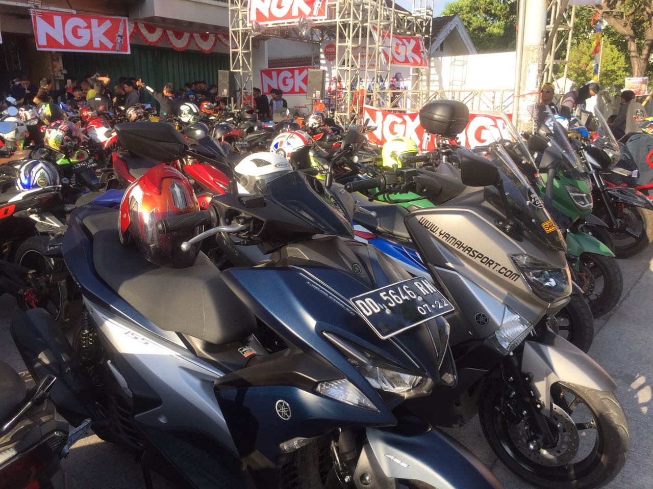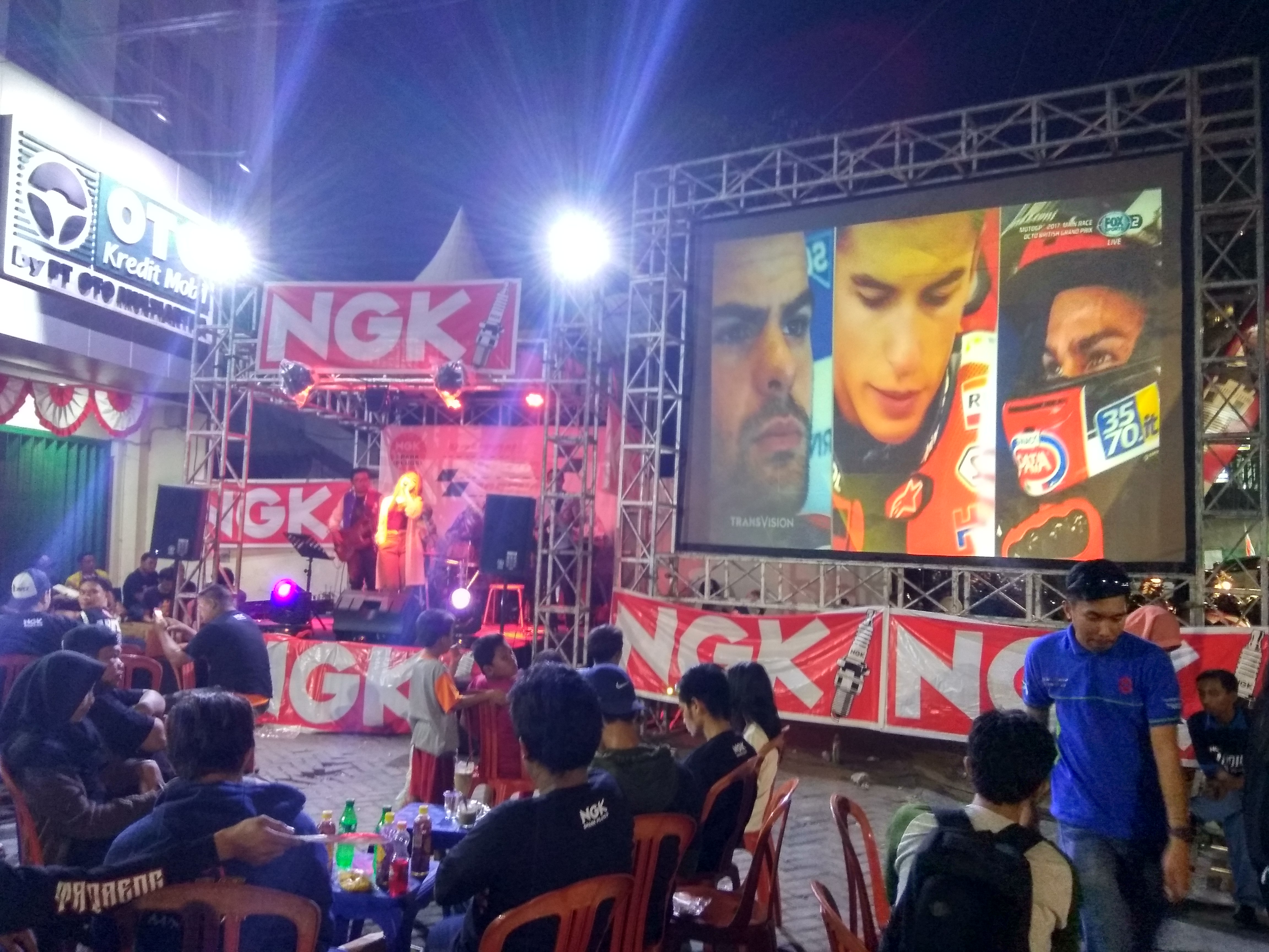 Walaupun schedule motoGP mundur dikarenakan berbarengan dengan balap Formula One, namun tidak menyurutkan antusiasme para komunitas kota Daeng ini. Berbagai hiburan dari band, sexy dancer, maupun games dengan hadiah menarik disuguhkan oleh NGK.