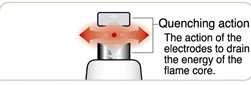 Sesuai dengan prinsip utama teknologi busi yaitu meredam efek quenching dimana inti api diharapkan tidak cepat padam pada saat proses pengapian. Karena bentuk dari elektroda dapat menghalangi pertumbuhan inti api pada saat busi bekerja, maka modifikator memotong elektroda ground untuk mempercepat proses penyebaran api.